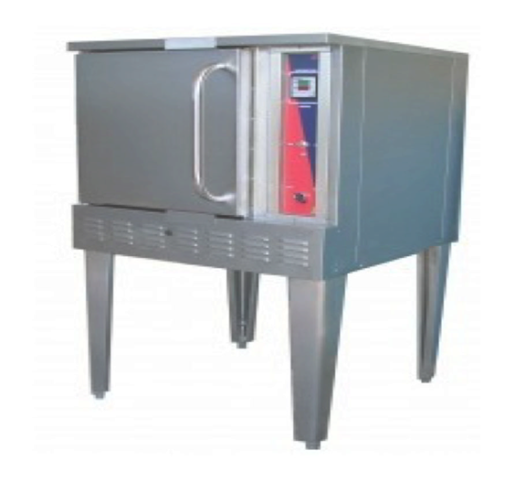 Horno de convección calentamiento a gas marca Dorantrub Modelo DRHG-3146 con capacidad para 4 charolas de .31 x .46 M, control de temperatura digital, timer programable con alarma sonora al termino del tiempo programado, encendido electrónico, una puerta solida y patas con regatones niveladores.